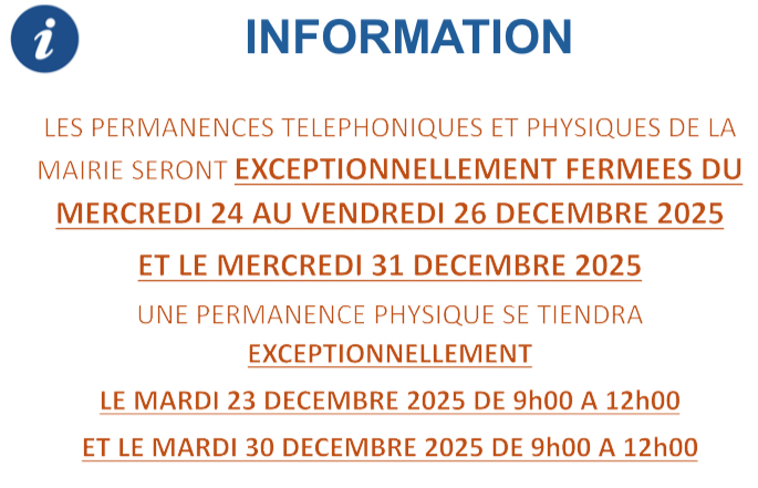 Secrétariat de mairie L'équipe municipale et les agents vous souhaitent à tous d'agréables fêtes de fin d'année.